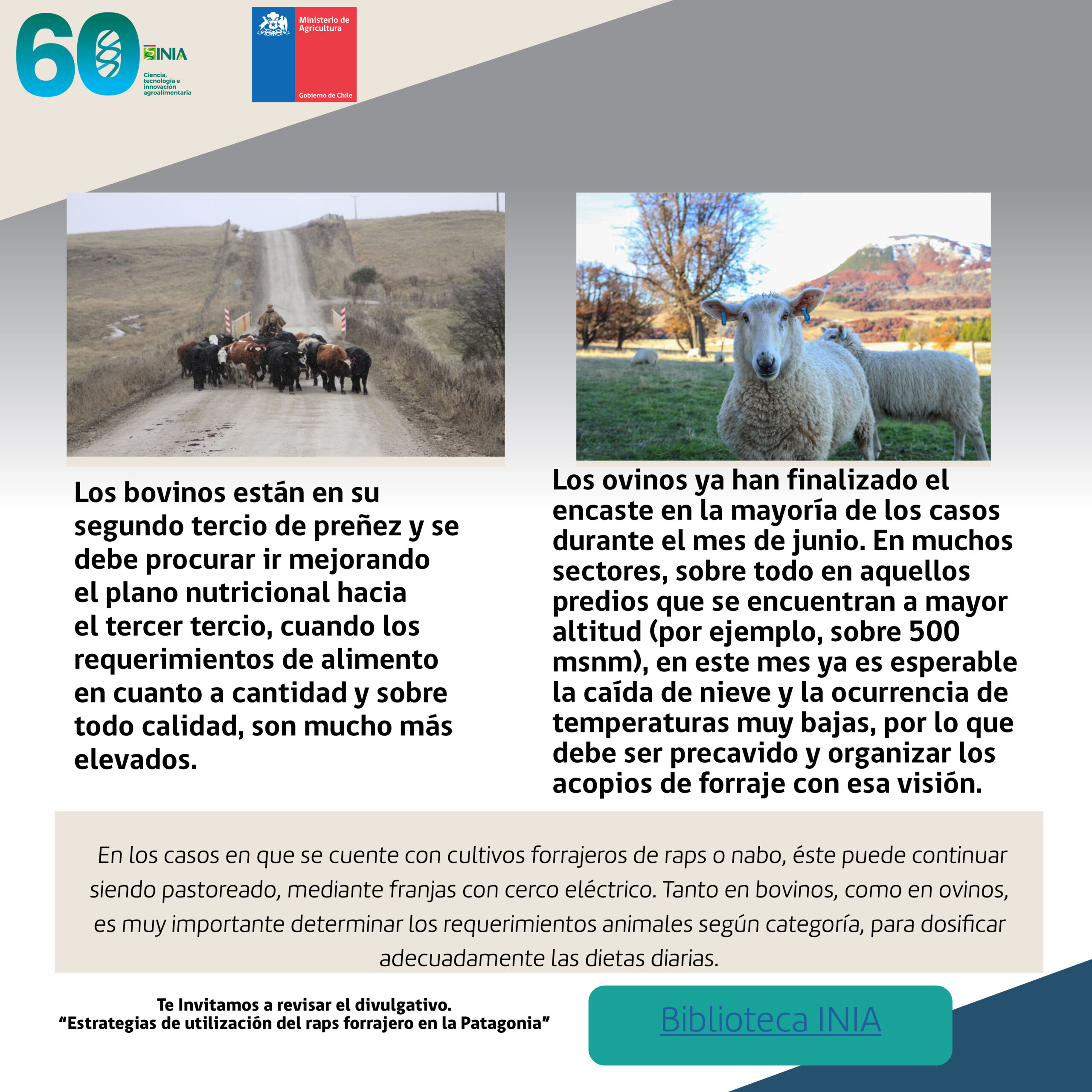 En junio, las praderas prácticamente no crecen debido a las condiciones climáticas. Esto obliga a los ganaderos a depender de forrajes suplementarios como raps, nabos y rutabagas, especialmente en la Zona Húmeda. El uso de recursos de baja calidad como quila y colihue debe ser complementado.