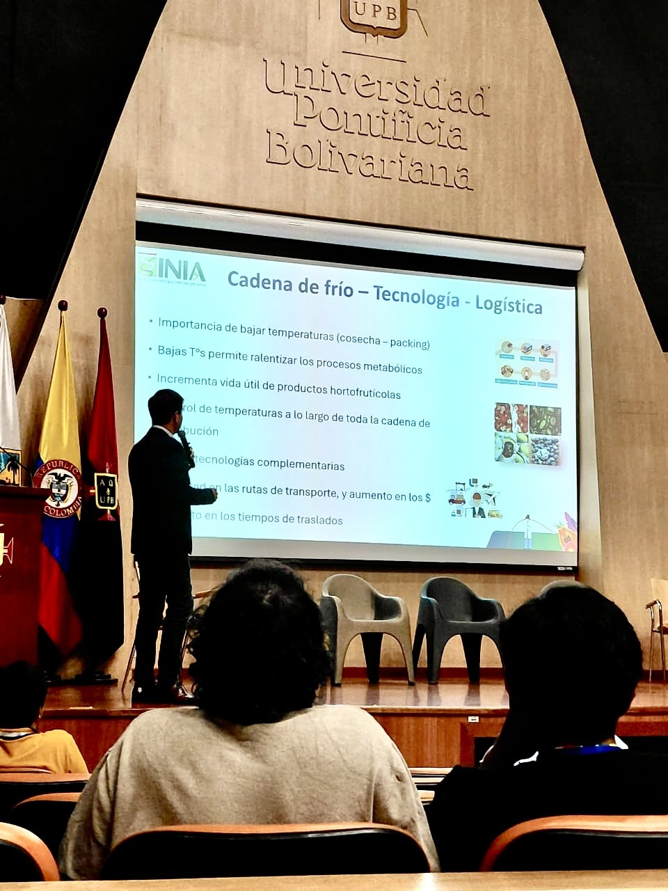 El investigador Dr. Pablo Ulloa expuso en el I Congreso Internacional sobre Innovaciones para la Agroindustria Rural, realizado en Medellín, los avances del INIA en sistemas de embalajes activos e inteligentes para prolongar la vida útil de frutas y reducir pérdidas postcosecha.