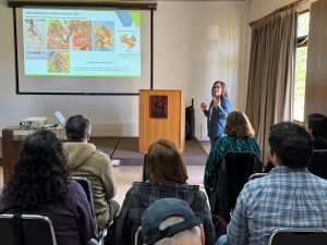La jornada culminó con la presentación de Camila Sandoval, bioquĆmica, M.Sc. e investigadora de INIA Remehue, quien profundizó en el tema “Del suelo al tubĆ©rculo: explorando Spongospora subterranea bajo el cultivo de papa”.
