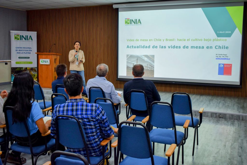Santiago, abril de 2026.- En un contexto de creciente necesidad por adaptar la producción agrícola a nuevas condiciones climáticas y exigencias de mercado, el Instituto de Investigaciones Agropecuarias (INIA) desarrolló en el Centro Regional INIA La Platina una instancia de cooperación internacional orientada a fortalecer el conocimiento en sistemas de producción de uva de mesa bajo plástico.