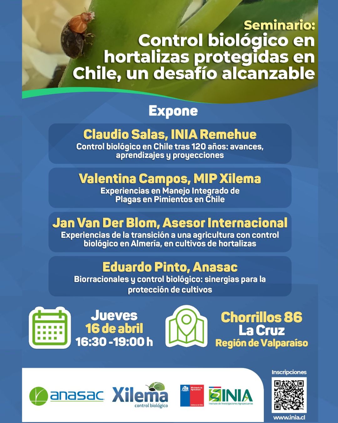 El seminario entregará información de experiencias y casos reales en el cultivo de pimientos en Chile, experto del INIA hará un recorrido por la historia, los hitos del control biológico en Chile. Exposición de Jan Van Der Blom, asesor internacional contiene temas de actualidad de la exitosa transición de Almería (España) donde cómo la horticultura intensiva logró migrar hacia un modelo basado en control biológico. Luego habrá una mirada estratégica sobre cómo integrar productos de bajo impacto con enemigos naturales para potenciar la protección de cultivos, reducir residuos y evitar resistencias a cargo de Eduardo Pinto (Anasac).